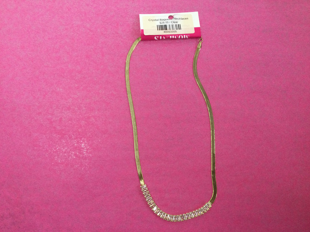 Add some glitz and glam to your jewelry collection with our Crystal Baguette Necklaces. Featuring stunning baguette stones on a sleek gold chain, these necklaces are the perfect statement piece. Elevate any outfit and sparkle with style!