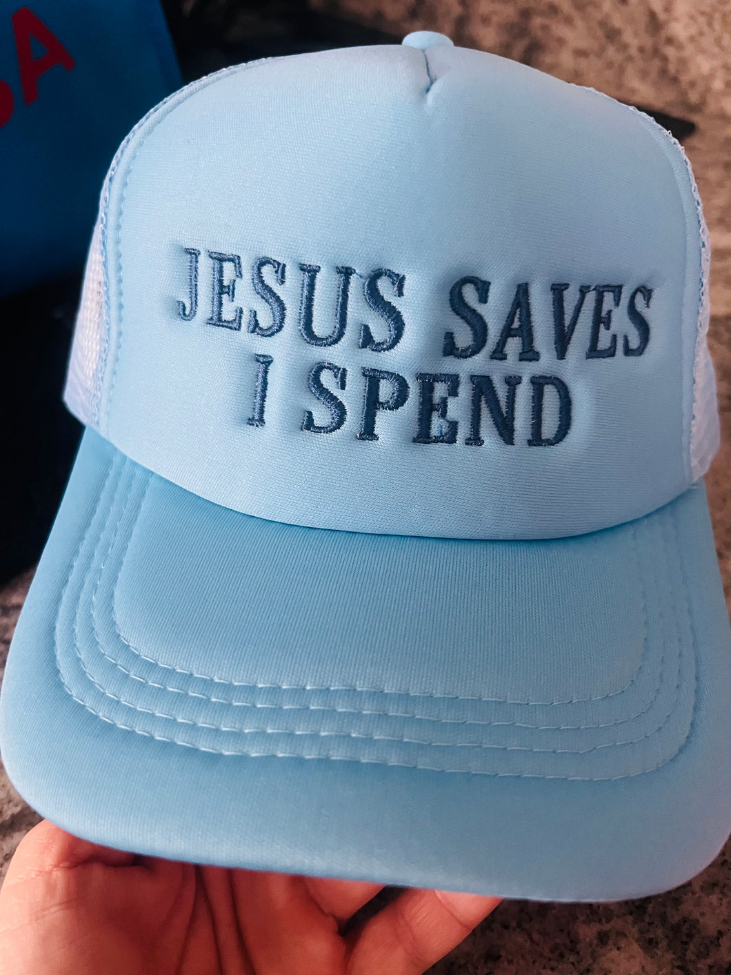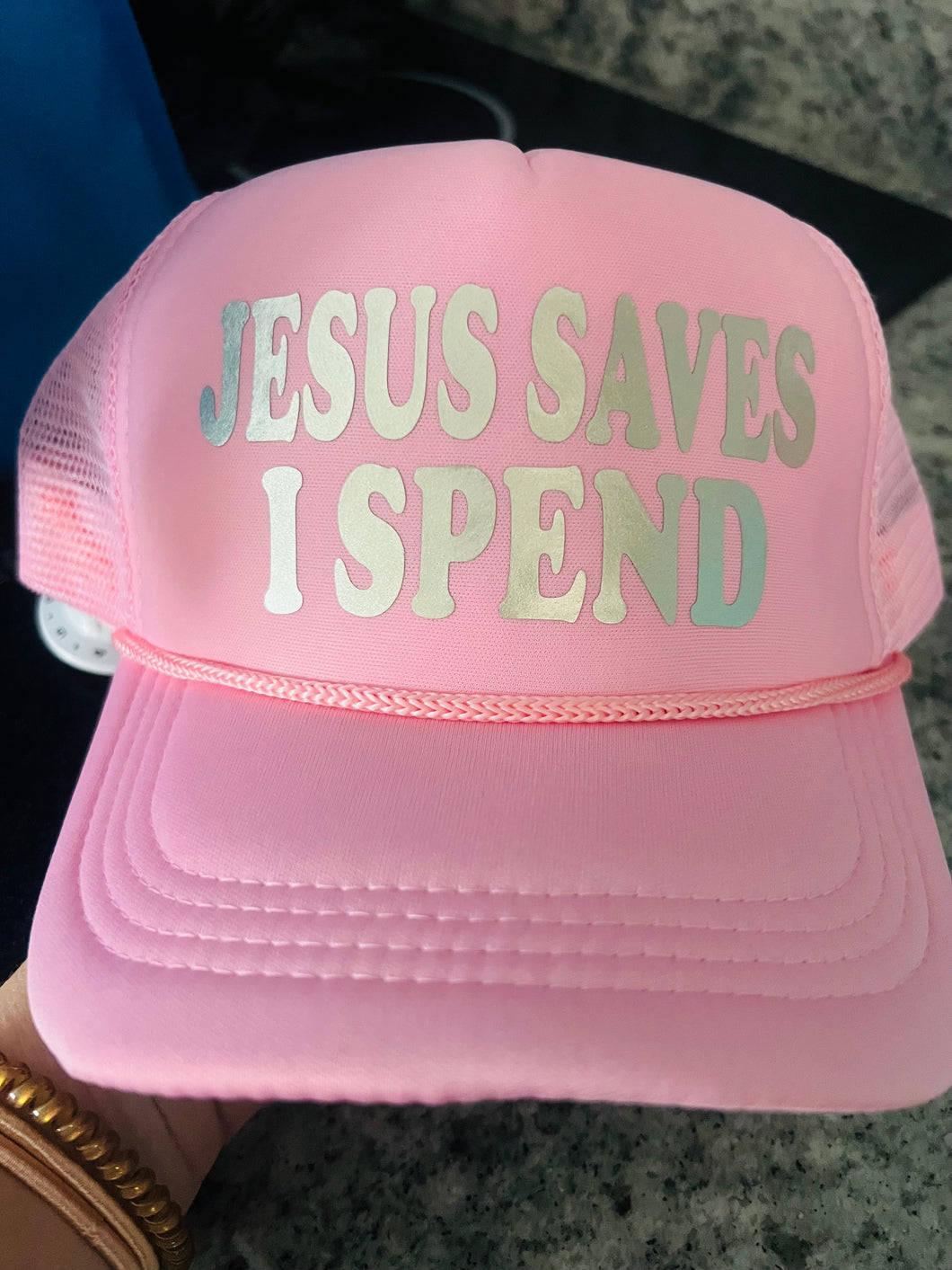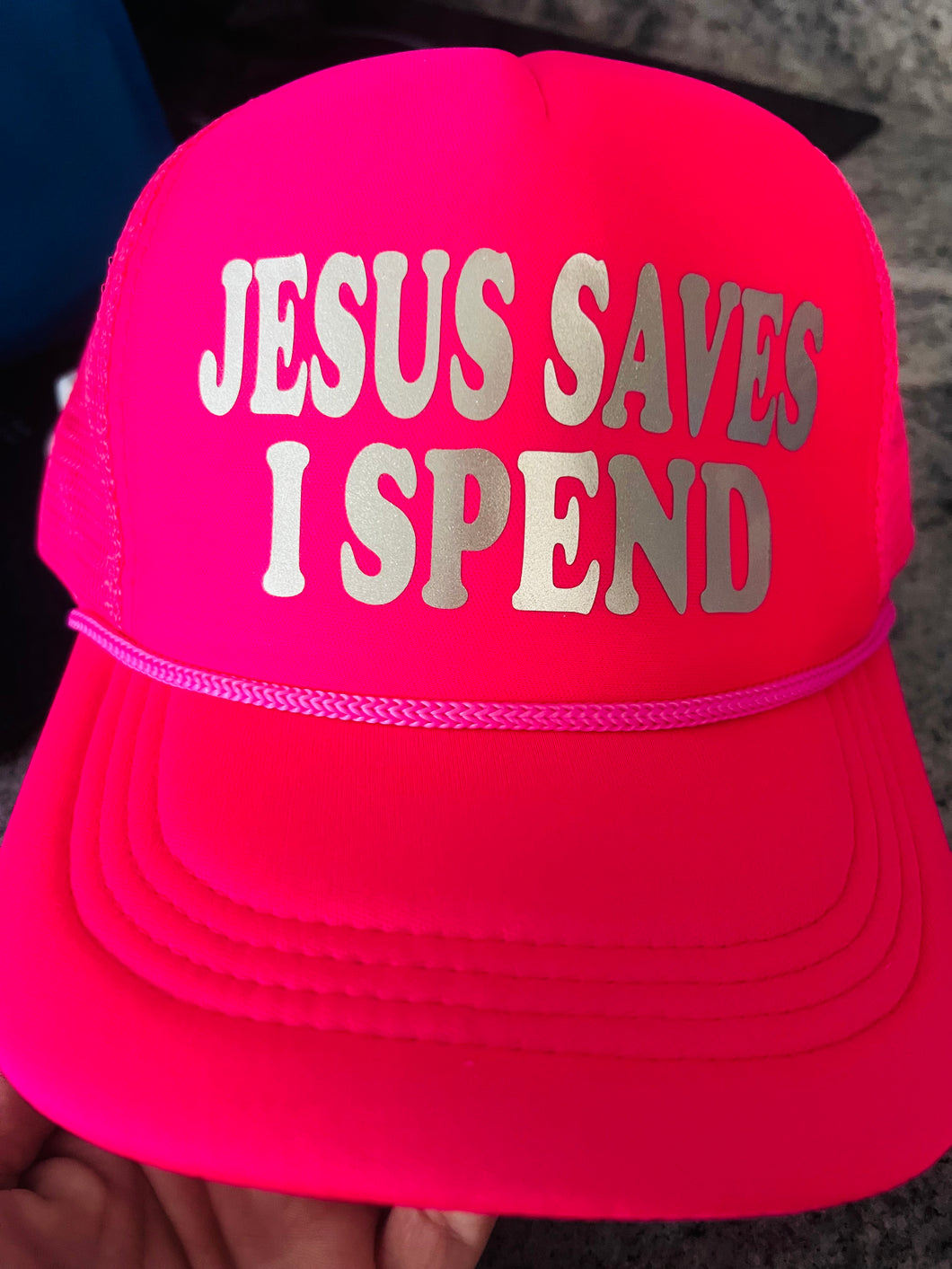 Get ready to make a statement with our Jesus Saves…I Spend Trucker hat! Emblazoned with a bold design, this colorful hat is perfect for adding some personality to any outfit. Show off your unconventional style and sense of humor with this quirky accessory. (Pun intended.)