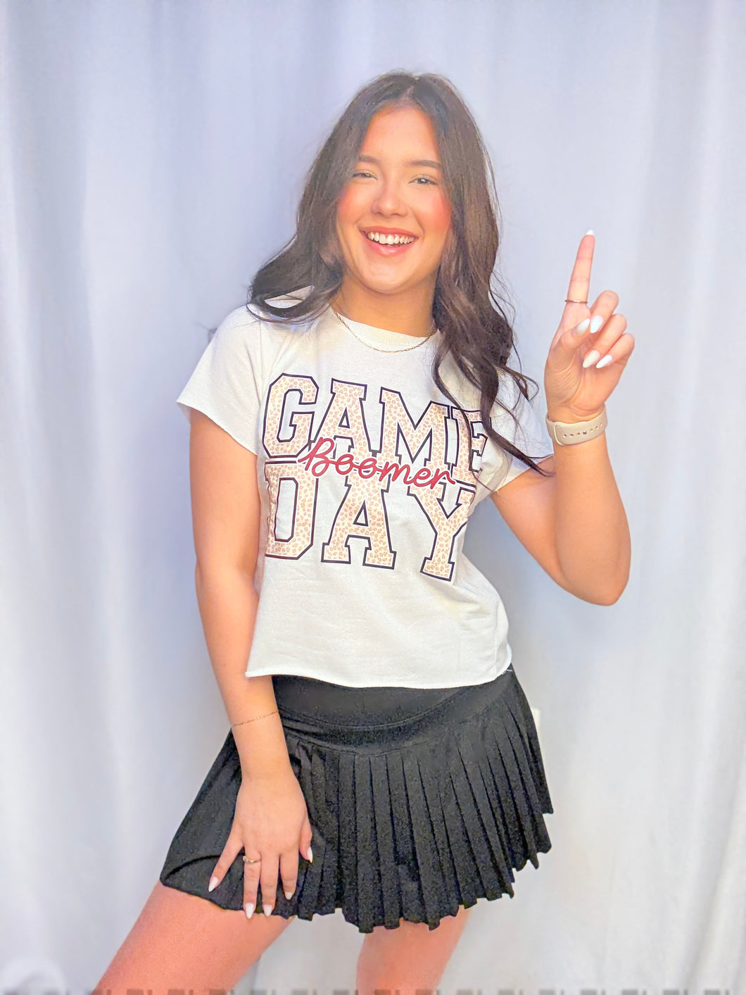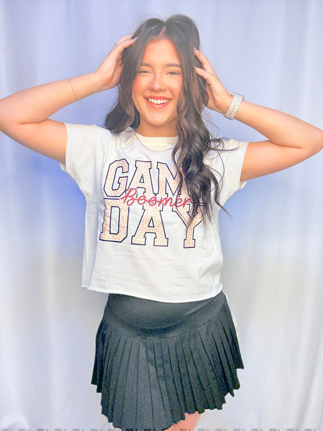 Show your Sooner spirit with a playful twist in the Boomer Leopard Tee. This cropped top combines bold leopard print with iconic Boomer pride, making it perfect for game day or casual fun. Comfortable and stylish, it’s designed to keep you looking fierce while cheering on your team.