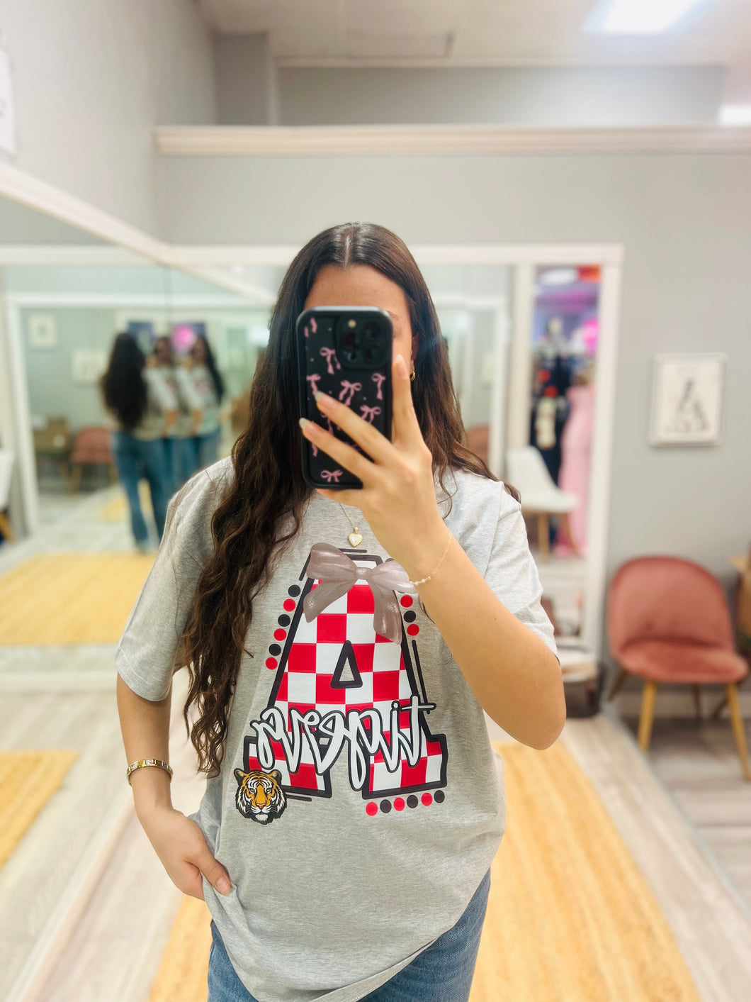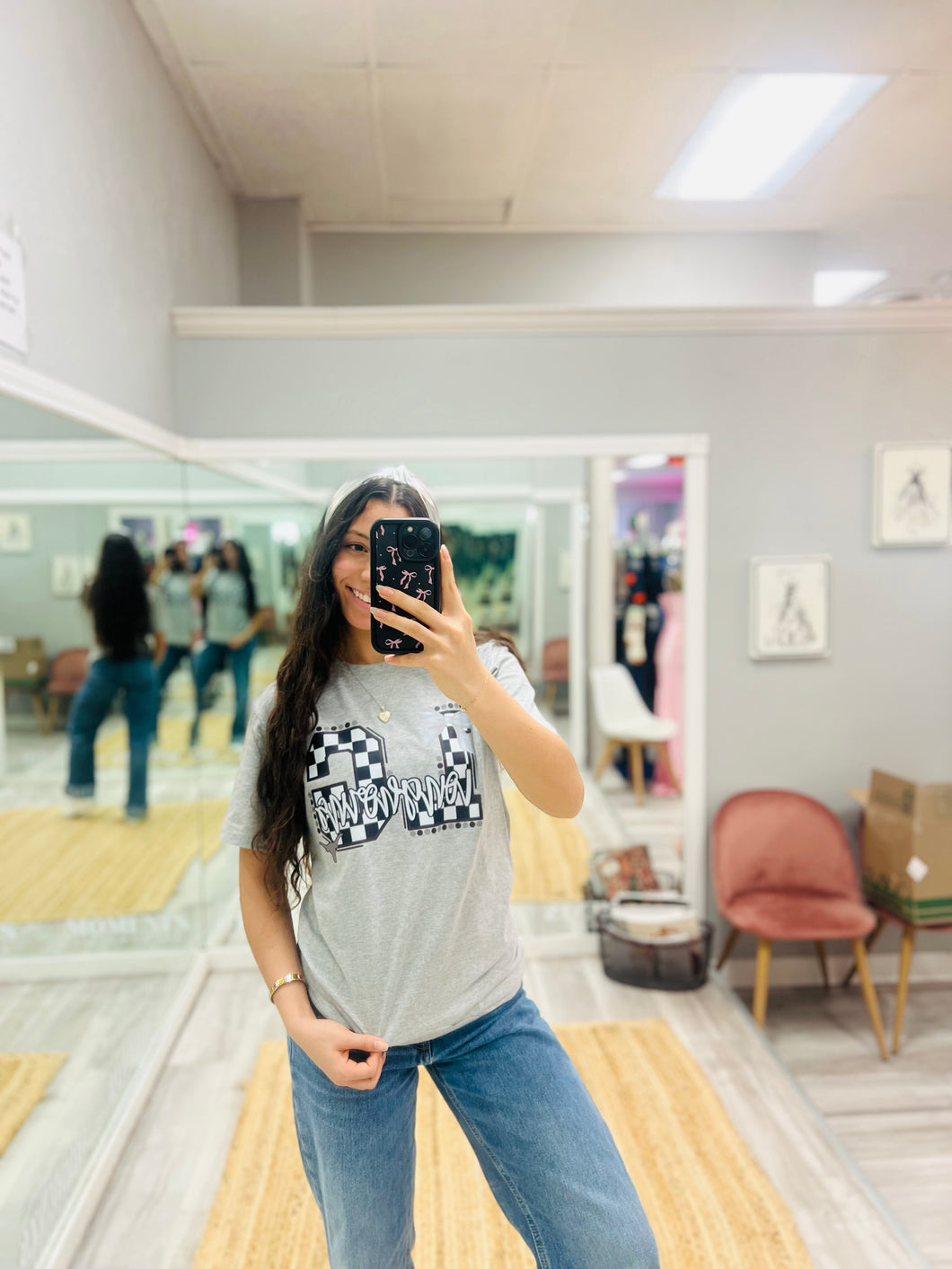 Show your school pride with a fun twist in the Checkered School Spirit Tee! Featuring a lively checkered pattern, this tee brings energy and style to any game day or casual hangout. Comfortable and cool, it’s perfect for cheering loud while staying cozy. Wear it, own it, and let your spirit shine bright!