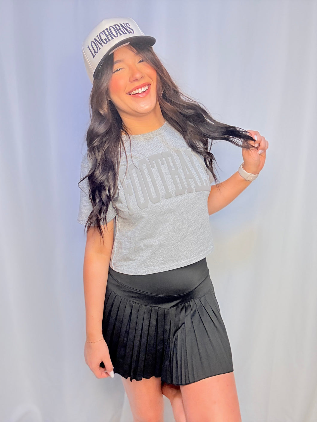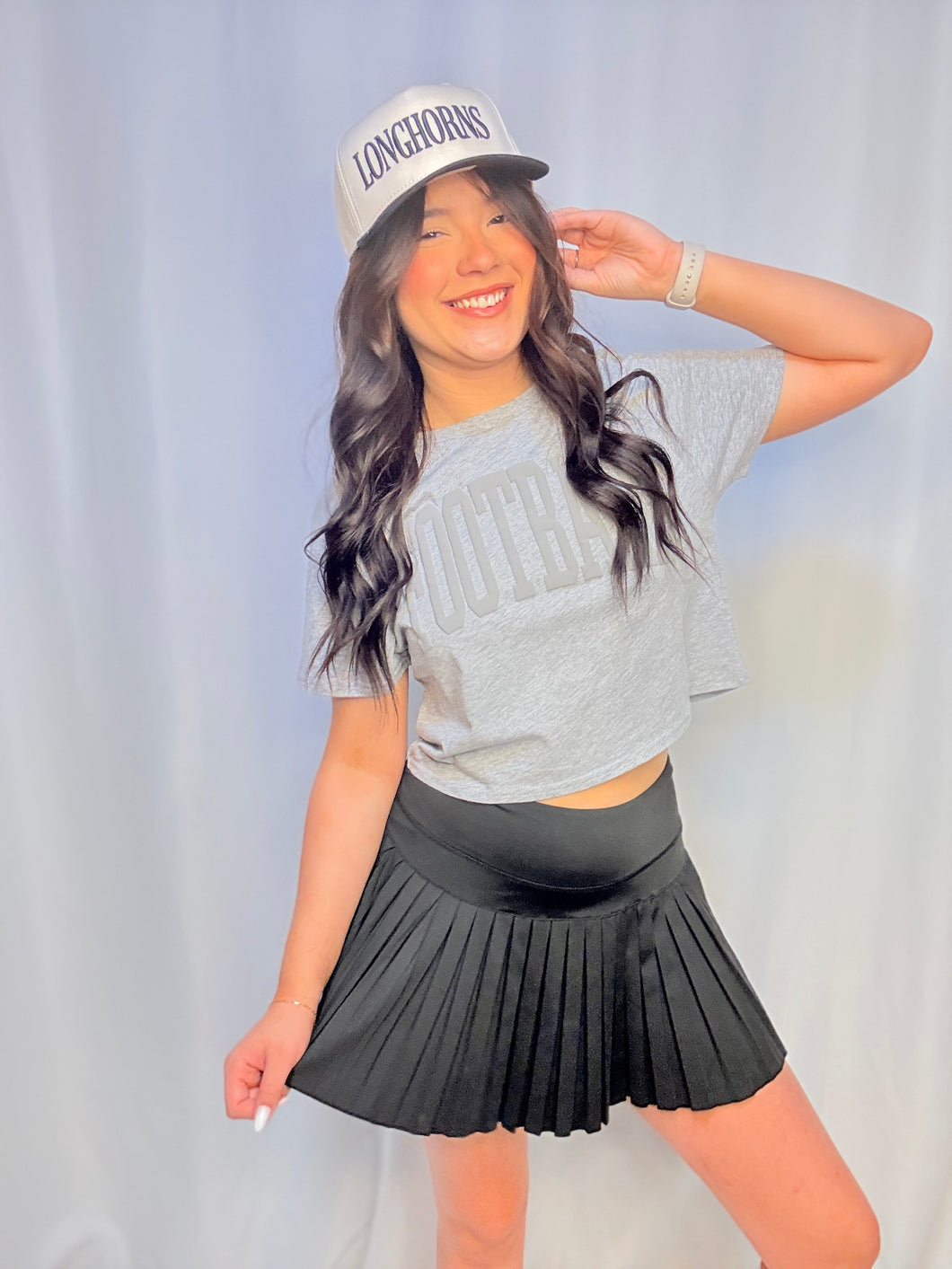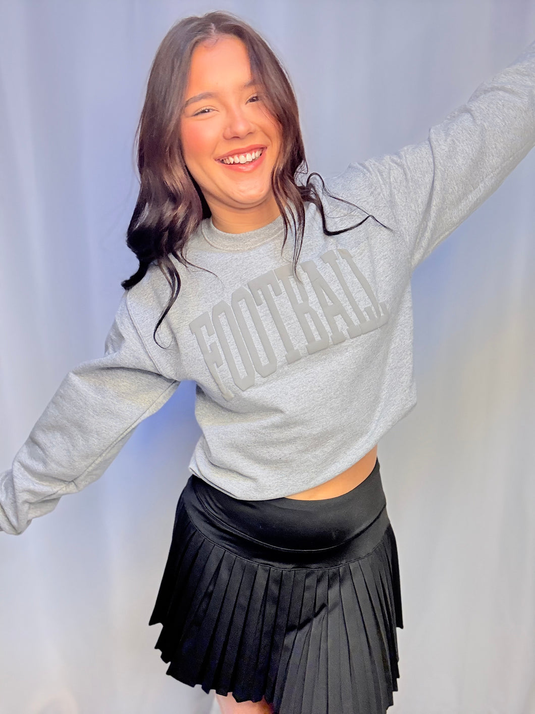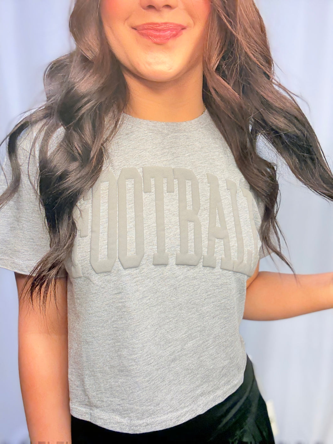 Get ready to tackle style with our Football Monochrome tee! Featuring a cool grey-on-grey puff print, this shirt brings a subtle yet sporty vibe perfect for game day or casual hangouts. Soft, comfy, and just the right amount of playful—score a touchdown in your wardrobe with this unique twist on a classic favorite.