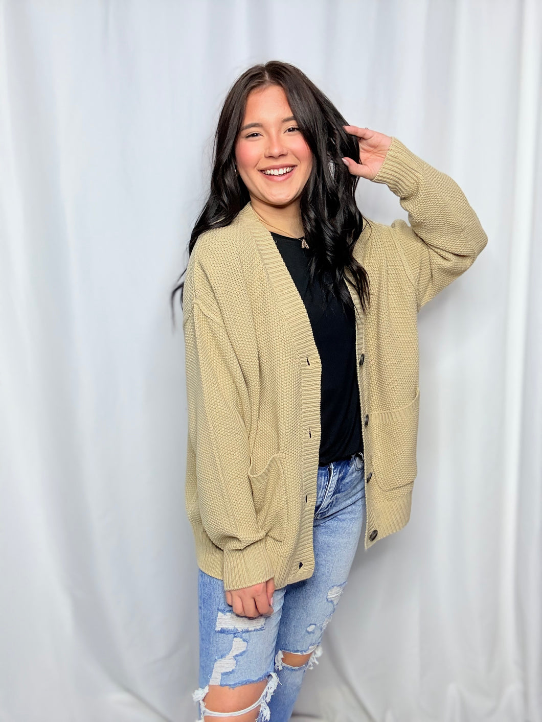 Stay cozy and stylish with our Heavy Knit Taupe Cardigan. Made from a thick, soft knit, this cardigan will keep you warm on chilly days while adding a touch of elegance to any outfit. Perfect for layering, this versatile cardigan is a must-have for your wardrobe!