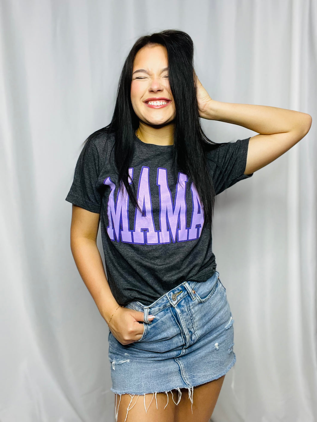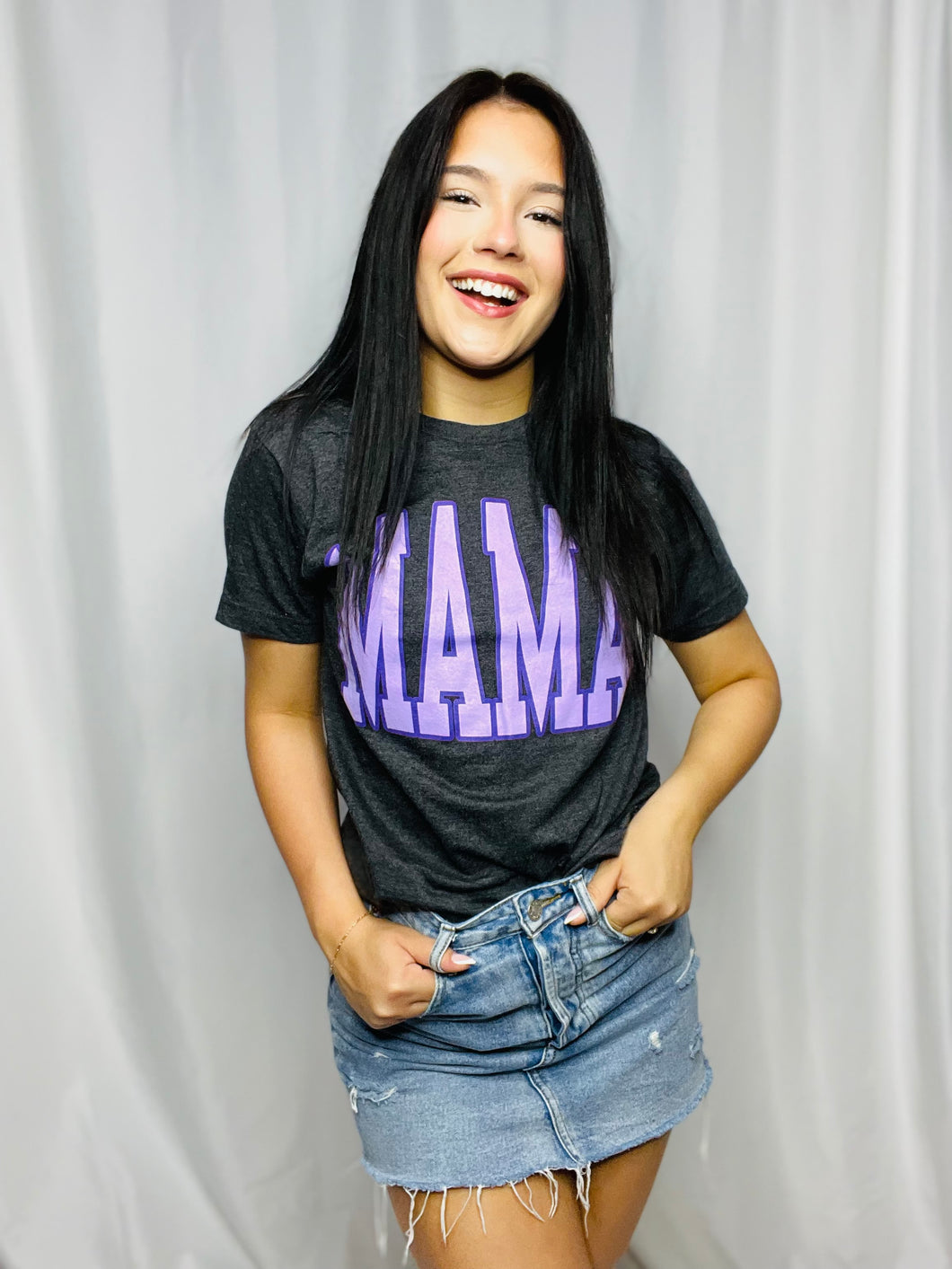 Let your mama pride shine with our Hey Mama tshirt! Featuring bold purple print (with a touch of dark purple) on a comfy tee. The perfect way to show off your mom status with a playful and unique style. (Mama-approved!)