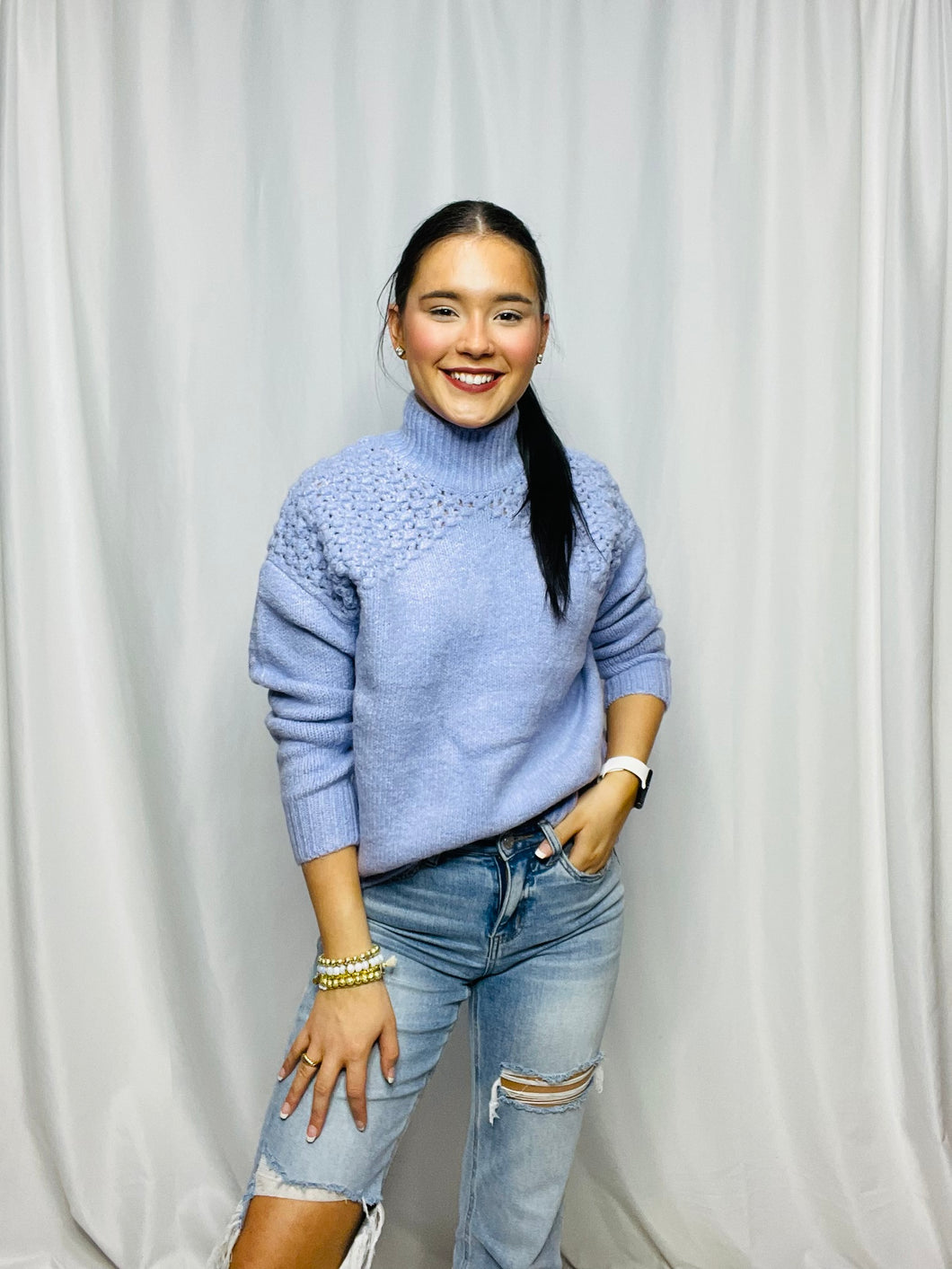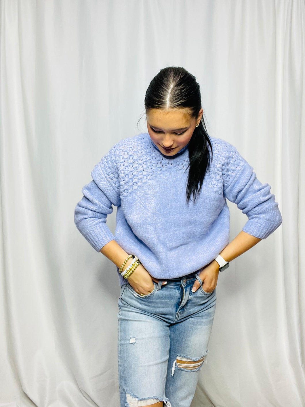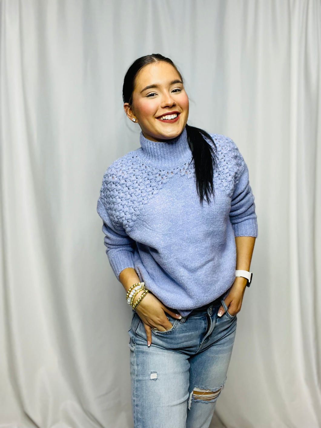 Snuggle up in our Lavender Blues Sweater, with a thick and soft knit that will keep you warm all day long. Perfect for those cold winter days, this sweater will quickly become your go-to for ultimate comfort.