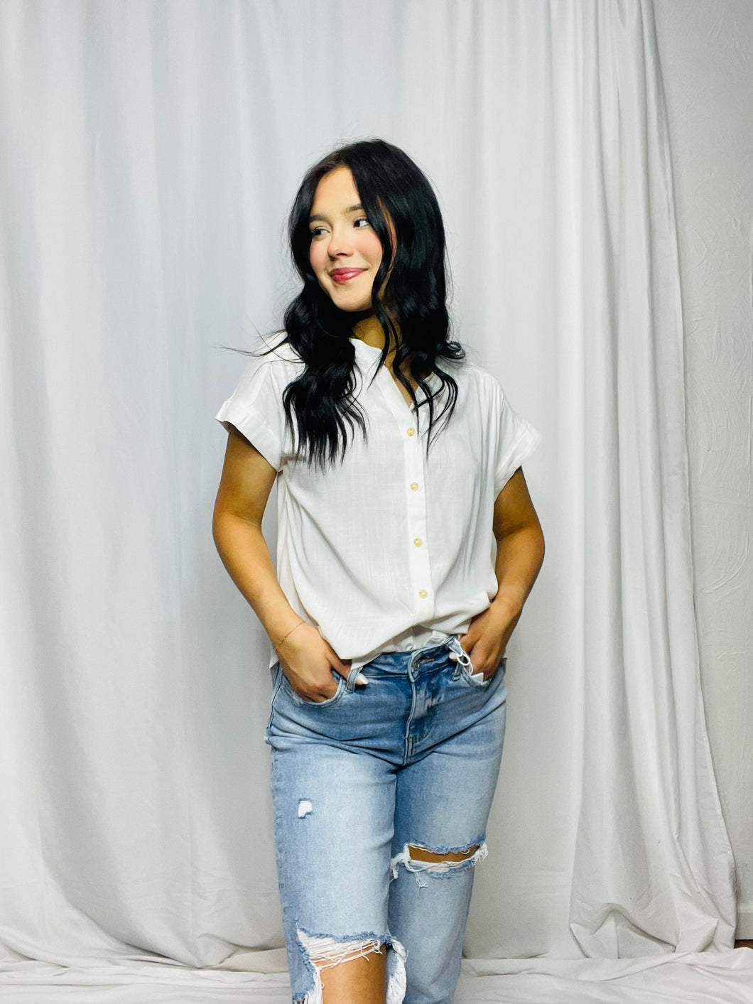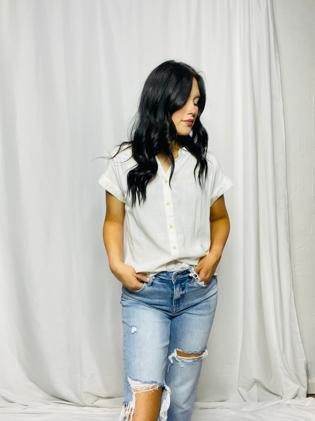 Upgrade your wardrobe with the Livin in Linen Blouse. This playful and stylish blouse features short sleeves and a button-up front, perfect for any occasion. Made of high-quality linen, it's both breathable and comfortable, making it a must-have for your closet. Elevate your fashion game with this versatile and fun piece!