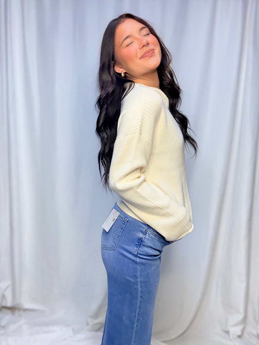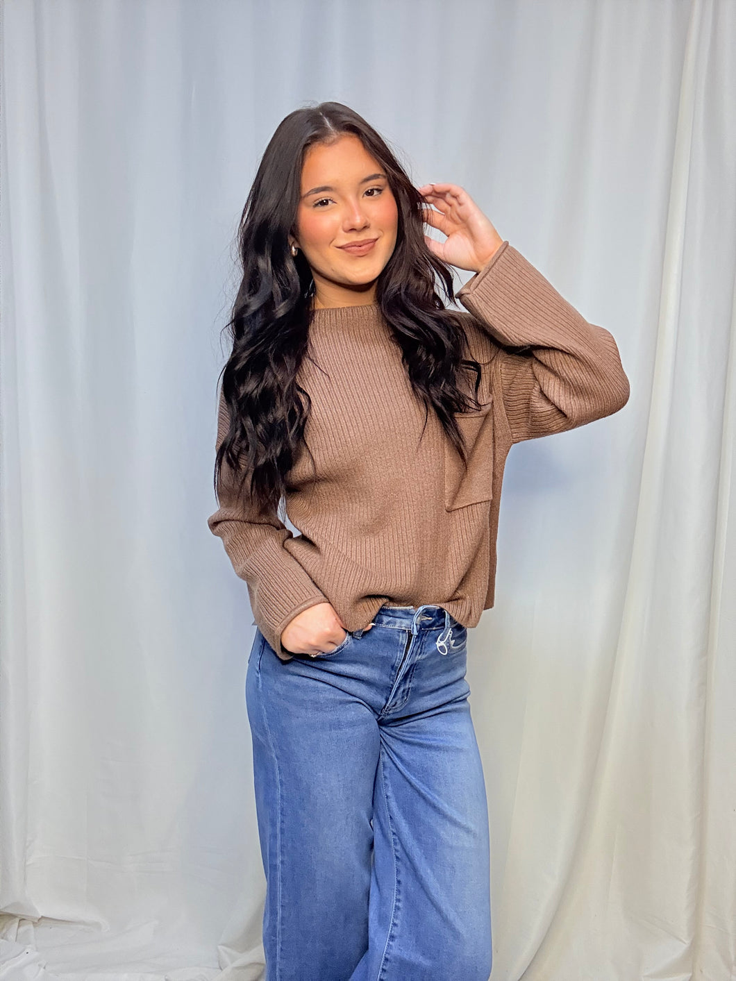 Wrap yourself in cozy charm with this mock neck sweater made from buttery-soft fabric. Its playful front left pocket adds a touch of whimsy and practical style, perfect for keeping small essentials close or just showing off a bit of flair. Comfortable and cute, it’s a sweater that’s as fun to wear as it is to style.